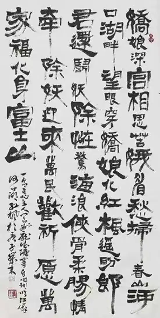 <三>、独创变隶书,自创词作自书《念奴娇.长江大桥》《融通四海》……