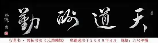 综上所述,庞德强从继承历代大家书法和历代碑帖钟鼎刻石简牍帛书…等等吸取精华,到山川云林、风雨雷电…大自然物象引入书法的求新创变。集聚了国学国粹精粹智慧,展示于人们赏心悦目的立体书法、碑拓书法、变隶书法…揭示了中国书法国粹宝藏取之不尽、用之不竭…诠释了中华国粹书法因源而流,求变创新之美韵无涯…