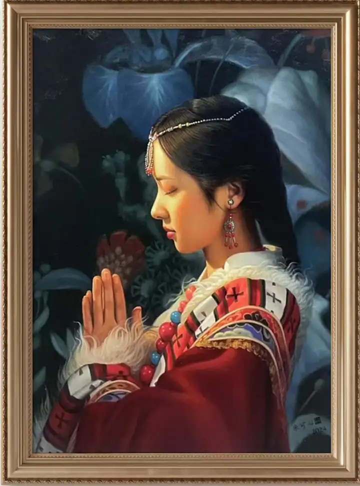 朱可心自幼浸润书香墨韵,对绘画怀揣炽热初心,凭借极致执着开启了十余年的自我深耕之路。她打破画种壁垒,系统性钻研多元技艺:从素描奠定的造型根基,到中国画的笔墨意境;从水粉、水彩的灵动色彩,到油画、工笔画的精细雕琢;再到烫画、版画的独特肌理,皆心无旁骛、融会贯通。这份不拘一格的探索,让她在传统与创新间找到平衡,形成兼具文人雅致与时代气息的独特艺术风格。