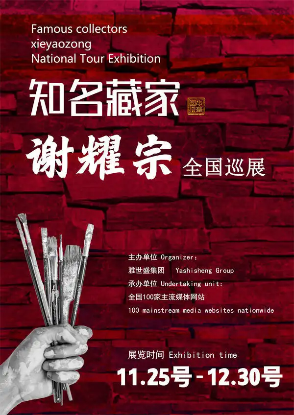 2025年秋拍全国个人精品展,本次展览涉及到全国23个省,4个直辖市,本次展览汇聚了谢耀宗先生近10年的优秀收藏作品并且全部经过YCS2024国际鉴定标准,具备了强大的背书,作品涵盖了中国书法、中国花鸟画、人物、中国水墨山水当代创作等多个方面,展览以“探源中华文明·创时代辉煌”为主题,围绕“中国传统画体系”“中国当代水墨创作”两个展览单元展开,旨在打造中国传统文化自信,促进艺术文化之交流,以文化助力中华民族现代文明建设。