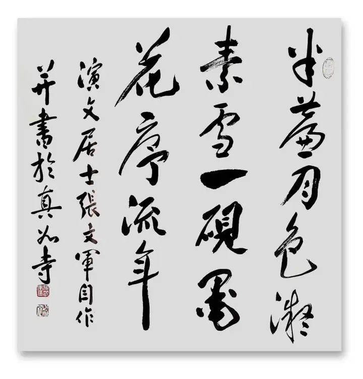 张文军先生是一位真正的文人学者书法家,他始终坚守“艺术的纯粹性”,从古代圣贤经典著作和名家碑帖中汲取营养,在自然中体悟真性,明了大道规律。孔子《论语.述而》曰:“志于道,据于德,依于仁,游于艺。”他游历祖国的大江南北和名山大川。唐代画家张璪有云:“外师造化,中得心源。”他对中国传统的儒、释、道文化多年悉心参悟,开创了古今鲜见的“南山禅意”书画流派,在当代书画界别有新格、独树一帜。