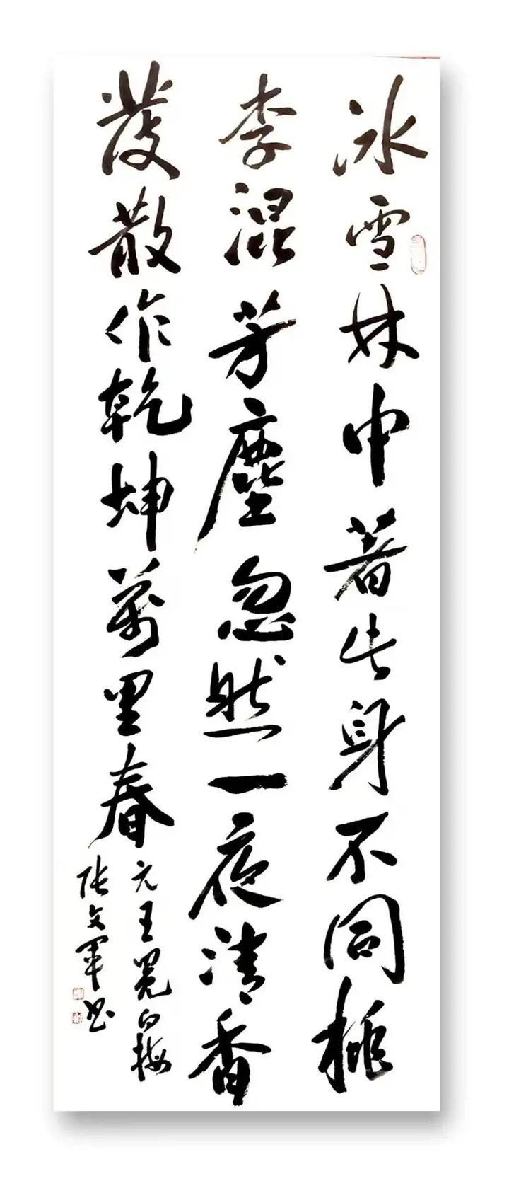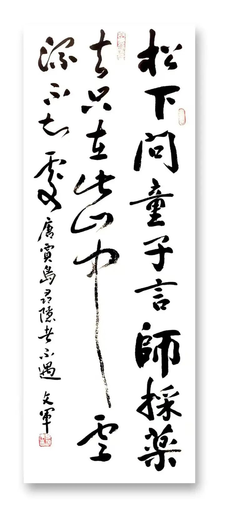 张文军在书画创作中博采古今大家之长,精研历代书画理论与技法。上溯甲骨文、鸟篆、秦篆、汉简,深入魏晋,融合唐宋,下至元明清,广泛涉猎。