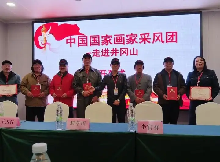 冬染井冈层林翠,笔绘初心续华章。近日,以“传承红色基因、描绘时代新貌”为主题的中国国家画家采风团全国大型写生活动在革命圣地井冈山隆重开幕。中国国家画家采风团是中央宣传部指导的国家级画家团队,成员是以党员为主包括爱党爱国的各地知名画家,旨在弘扬红色文化、促进红色题材美术创作。 该团队由获得“人民艺术家”称号和“国务院特殊津贴专家、红色艺术家称号”享受副部长级待遇的全国党建工作者刘孝田领衔,践行“以人民为中心”的文化发展理念,满足人民精神文化需求。