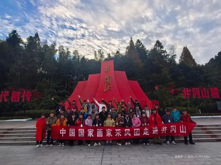 据悉,本次写生活动将持续半个月,画家们将深入井冈山革命烈士陵园、八角楼、黄洋界、大井革命旧址群等红色遗址,以及神山村等新时代乡村振兴典范区域,开展实地创作、学术研讨与经验交流活动 。活动既延续了傅抱石、李可染等前辈艺术家“为祖国山河立传”的创作传统,又聚焦新时代井冈山的发展变迁,力求实现红色历史与当代风貌的艺术融合。主办方表示,邀请刘孝田等业界领军人物参与,旨在搭建高水平艺术交流平台,让艺术家们在红色实地写生中感悟初心、提升技艺,推动“红色山水画”创作模式的创新发展。